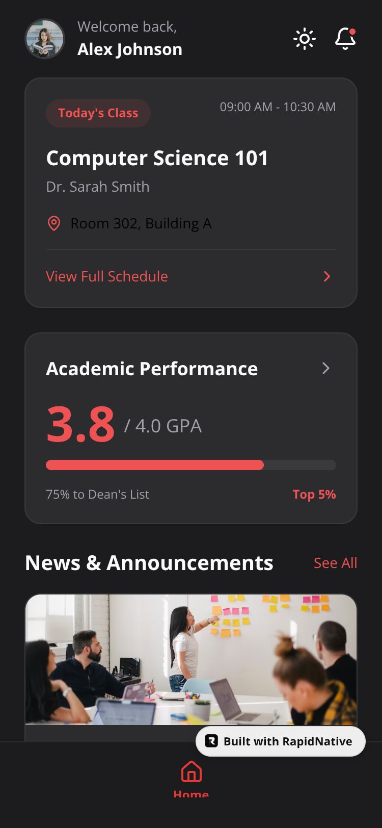 Browse this public project and clone it to start building your own React Native UniLife Student app.