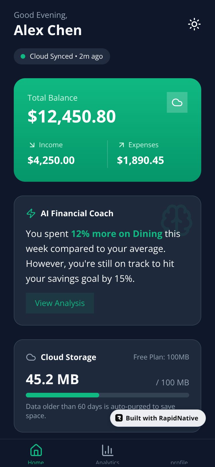 A local-first expense tracker with AI-driven insights, dual-brain sync logic, and strict cloud privacy controls.