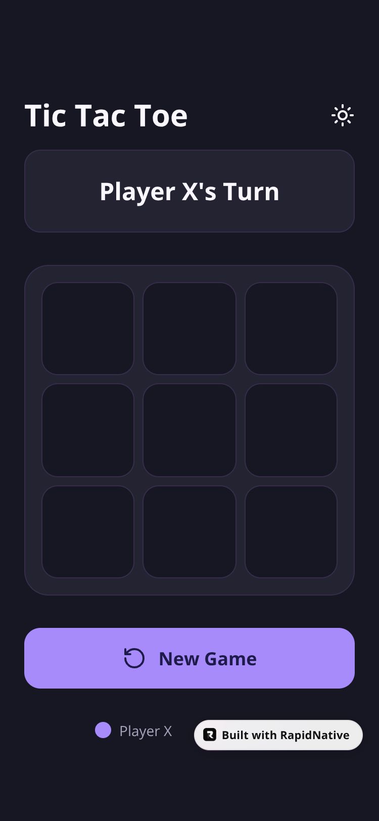 A classic two-player Tic Tac Toe game with a modern UI. Play X or O and challenge your friend on the same device.