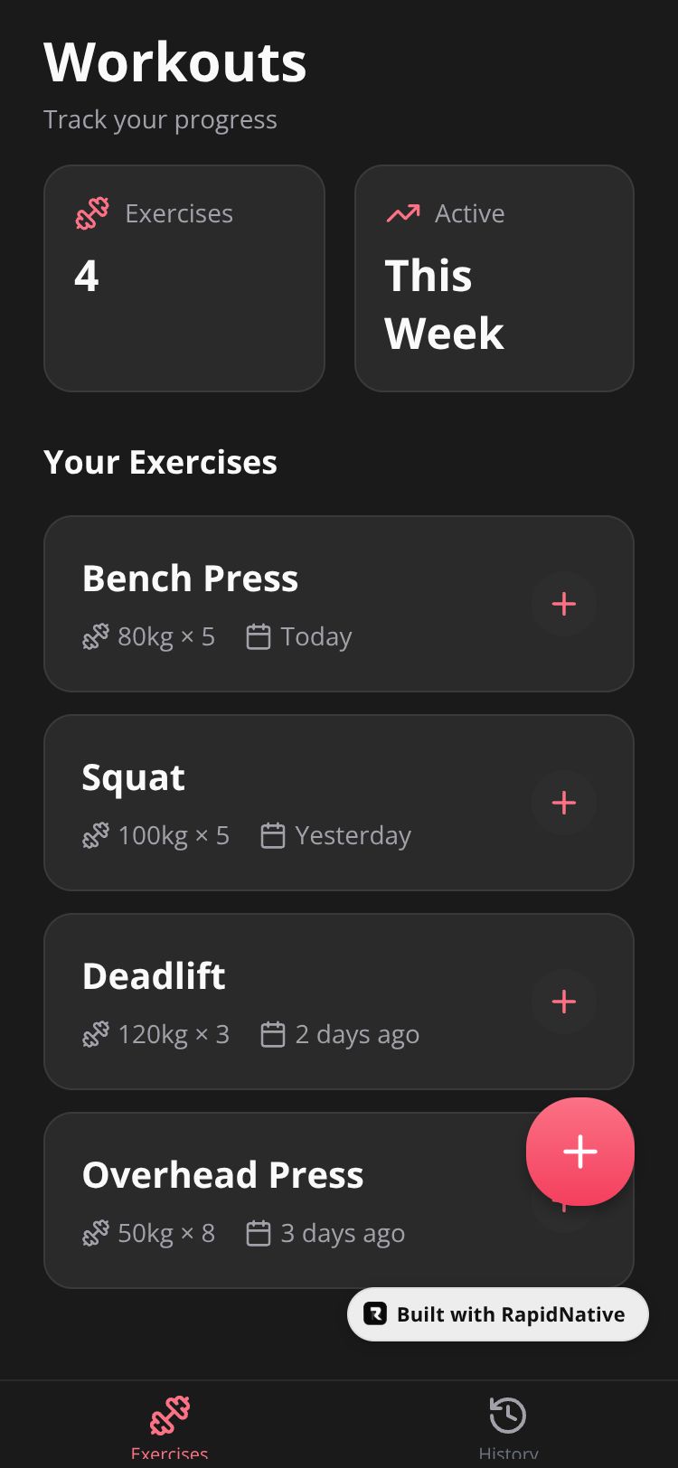 Browse this public project and clone it to start building your own React Native FitTrack Log app.