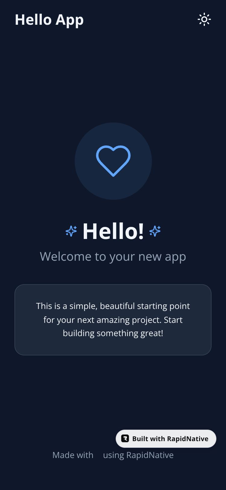 Browse this public project and clone it to start building your own React Native Hello App app.