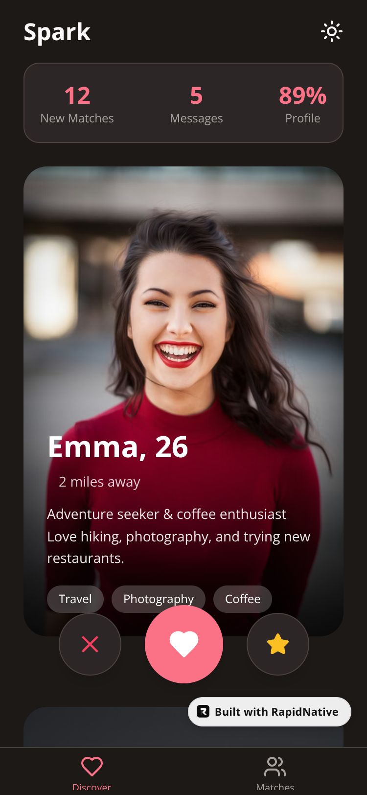 Discover meaningful connections with Spark. Swipe through profiles, match with people who share your interests, and start conversations that matter.