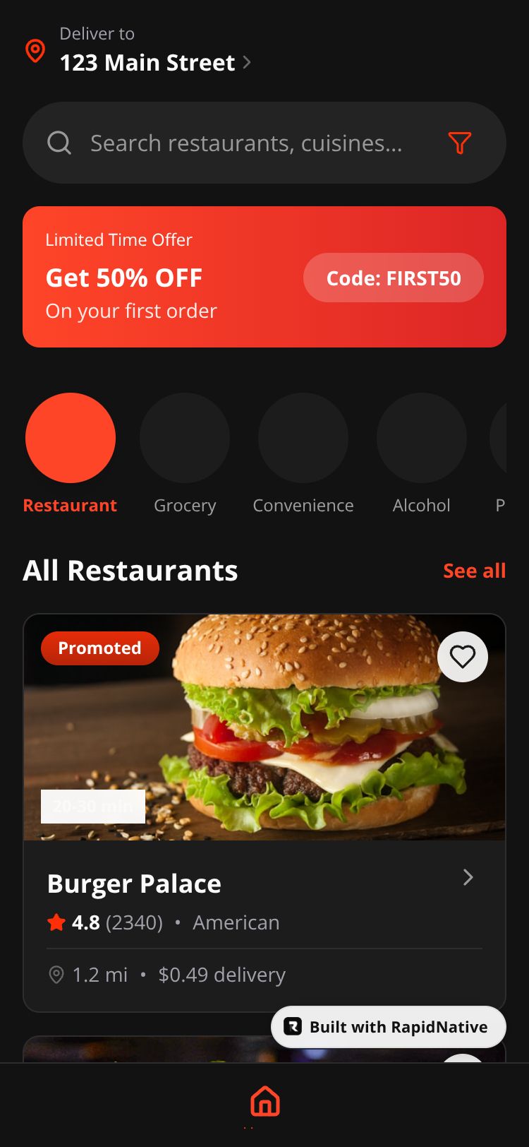 React Native QuickBite Eats App Preview