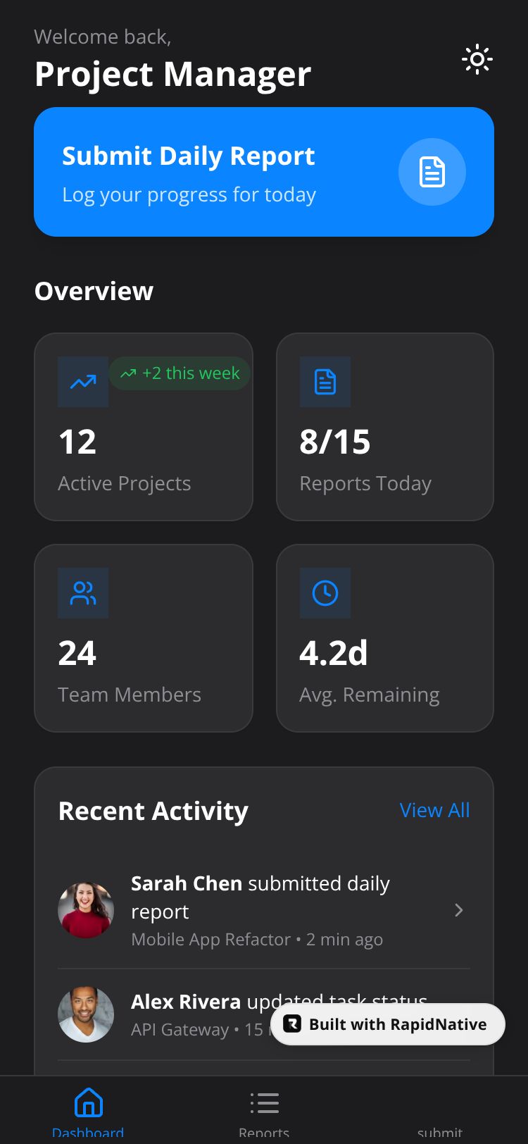 Browse this public project and clone it to start building your own React Native ProjectPulse app.