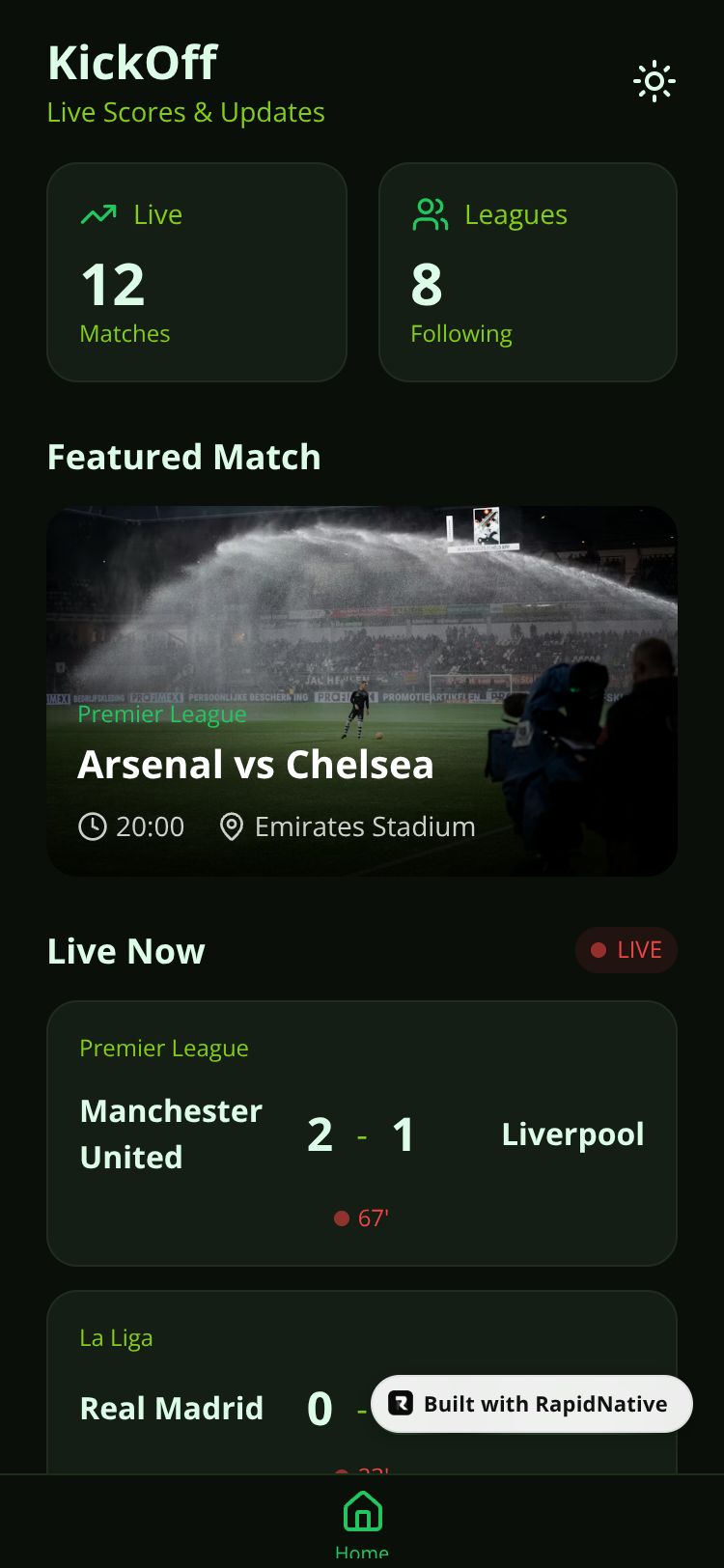 Your ultimate football companion with live scores, match fixtures, league standings, and team stats.
