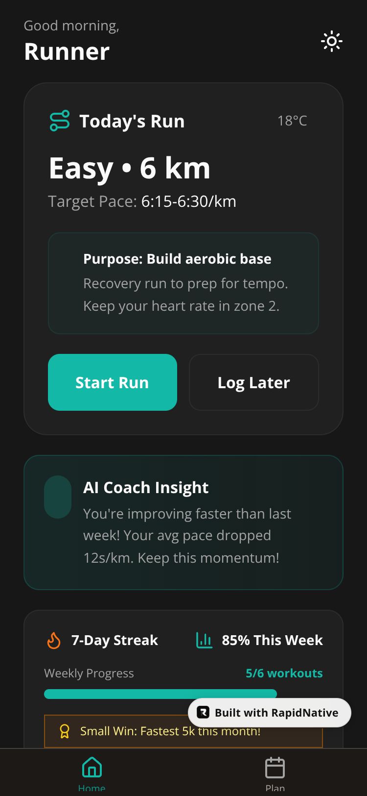 A mobile-first running app that helps runners log runs, track progress, set goals, and generate personalized training schedules using AI predictions.
