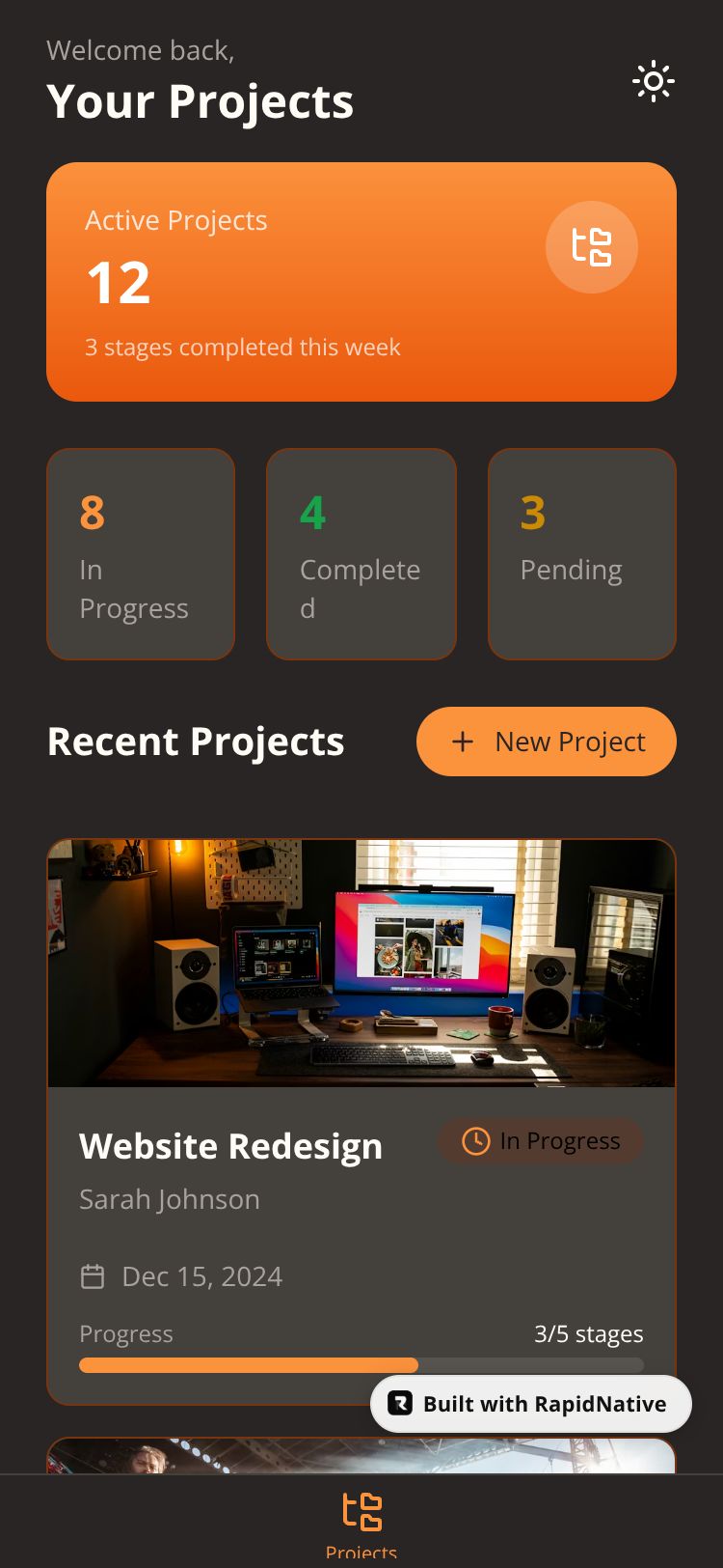 A freelancer project management app with stage tracking and client notifications. Create projects, manage stages, and keep clients informed.