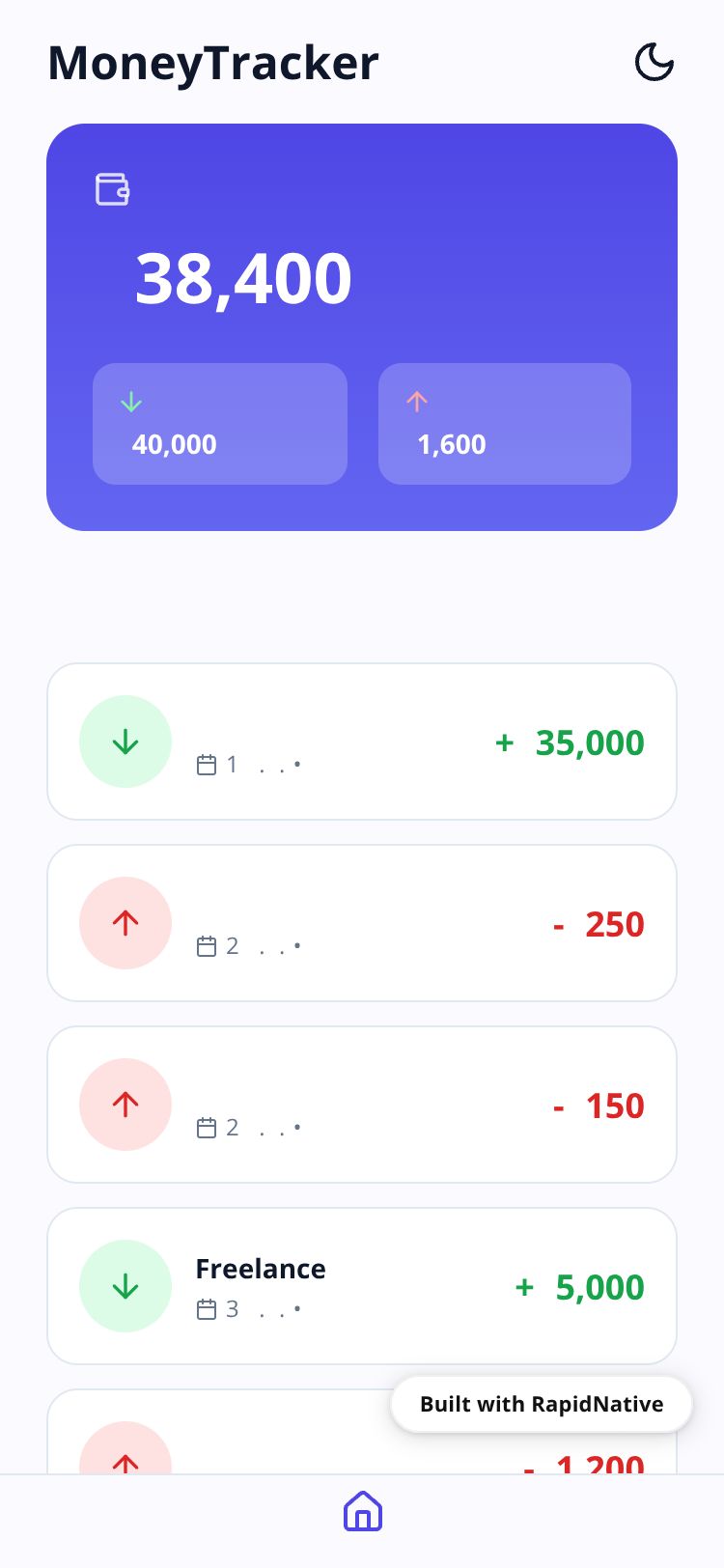 Browse this public project and clone it to start building your own React Native MoneyTracker app.