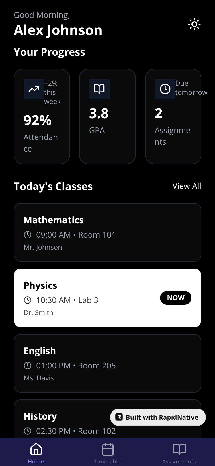 A comprehensive student ERP app for tracking classes, assignments, grades, and attendance. Stay connected with your school anytime.