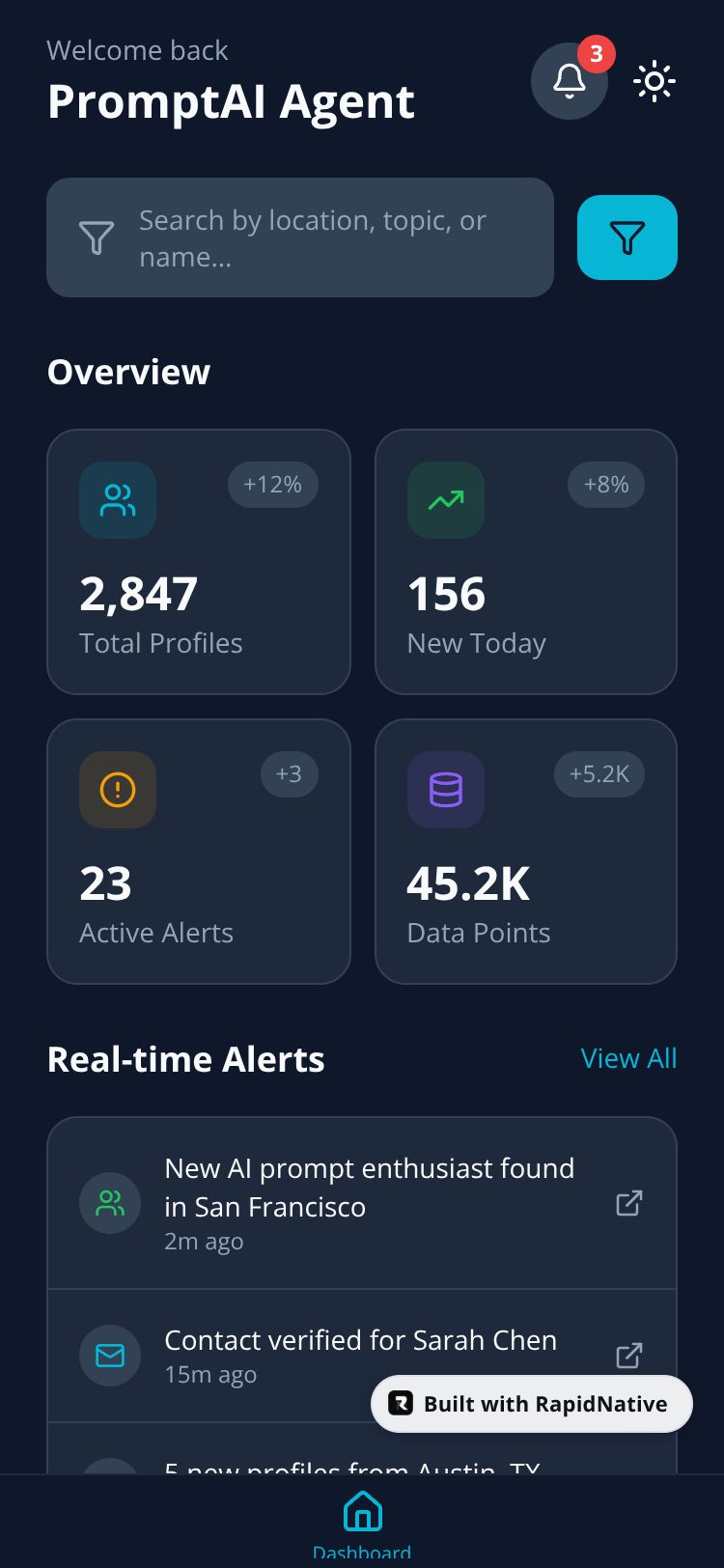 Browse this public project and clone it to start building your own React Native PromptAI Research Agent app.