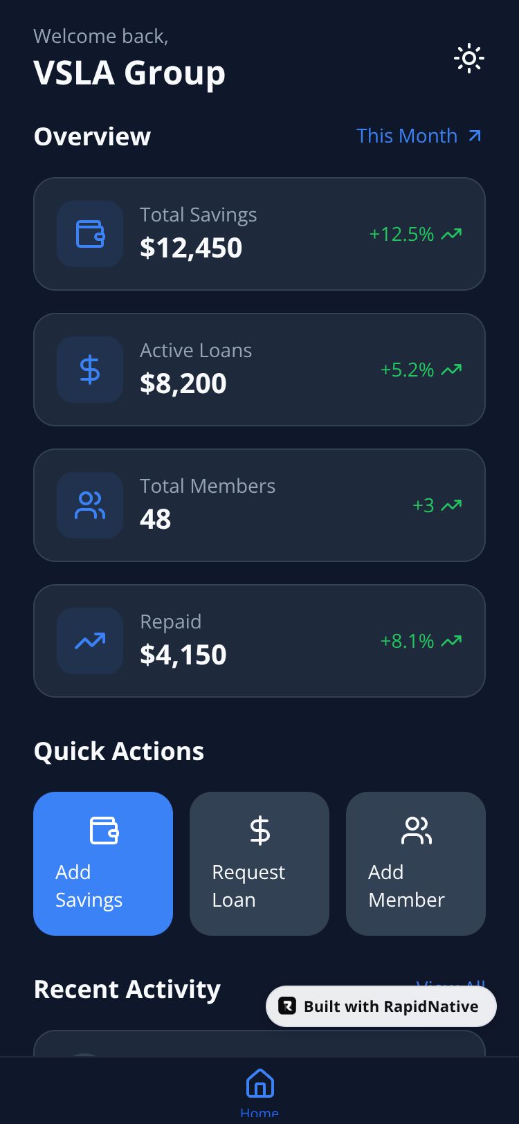 Browse this public project and clone it to start building your own React Native VSLA Manager app.