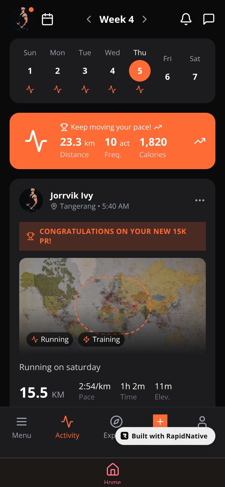 A comprehensive fitness and nutrition tracking app combining Strava-style activity tracking with AI-powered food calorie scanning, daily nutrition management, and social fitness challenges.
