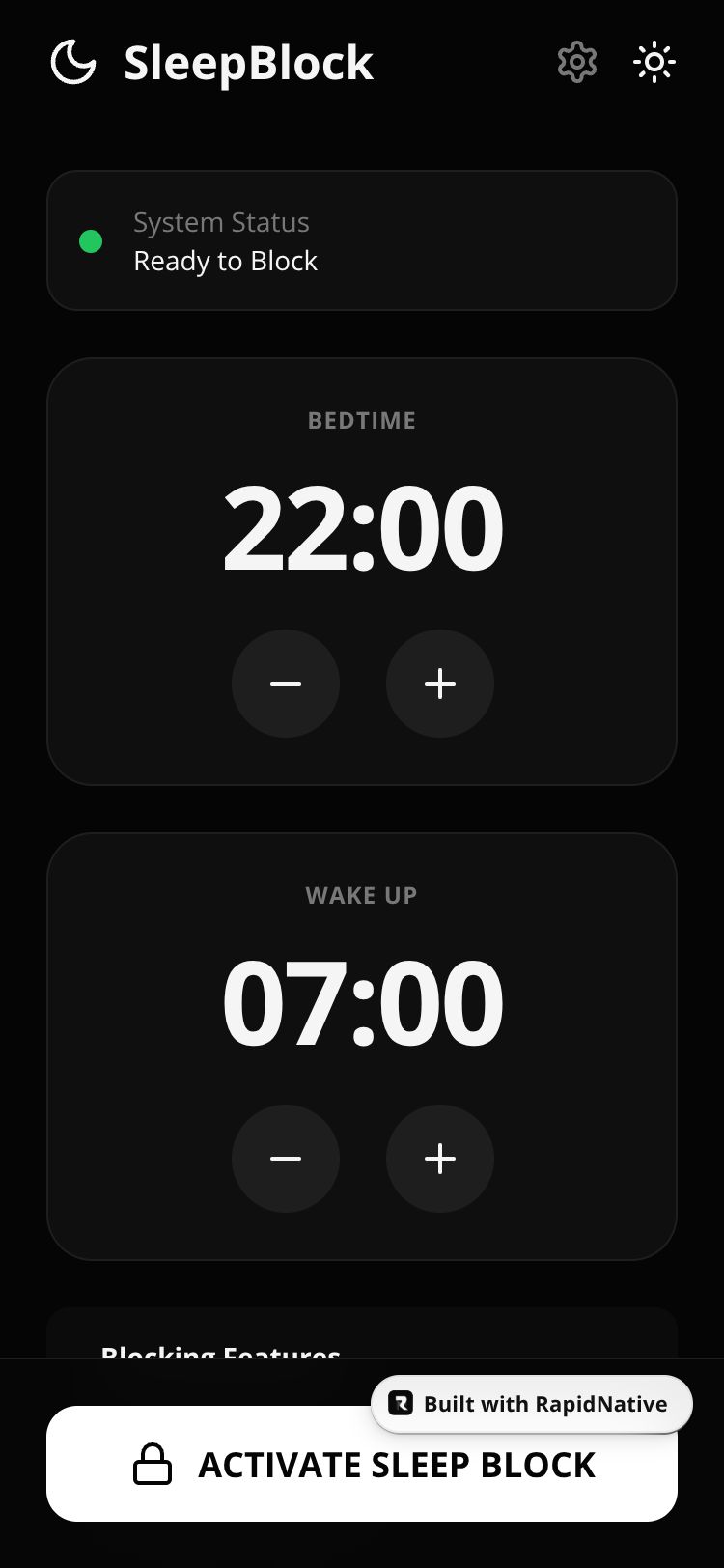 Browse this public project and clone it to start building your own React Native SleepBlock app.