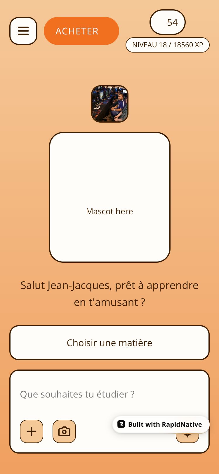 A gamified study app with XP tracking, levels, and interactive learning tools. Learn while having fun with mascot guidance.