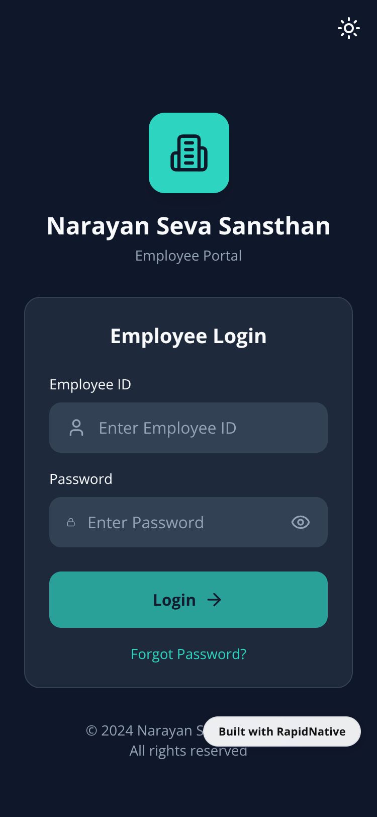 A comprehensive mobile ERP application for Narayan Seva Sansthan with employee login, attendance tracking, leave management, and dashboard analytics.