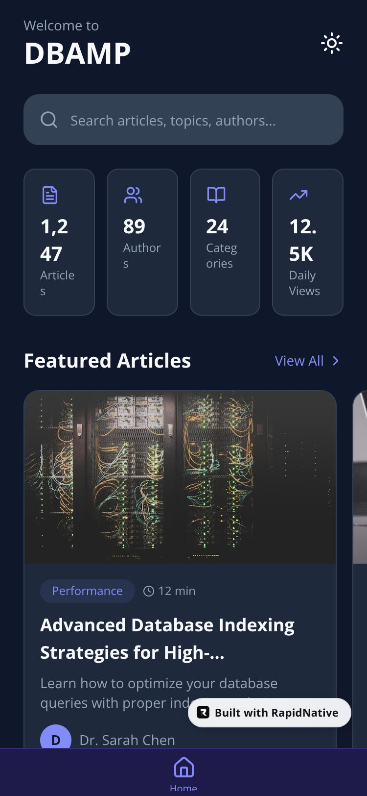 Browse this public project and clone it to start building your own React Native DBAMP app.