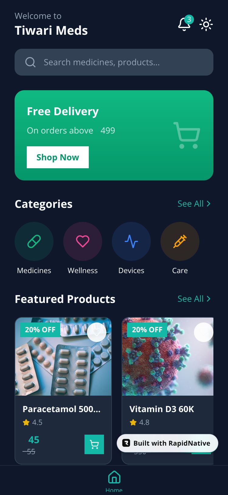 React Native Tiwari Meds App Preview