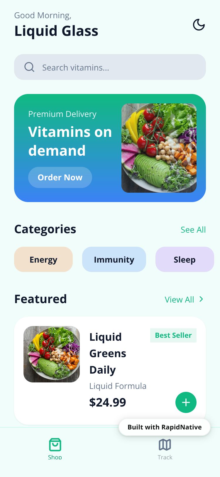Premium vitamin delivery service featuring real-time order tracking and personalized wellness plans.