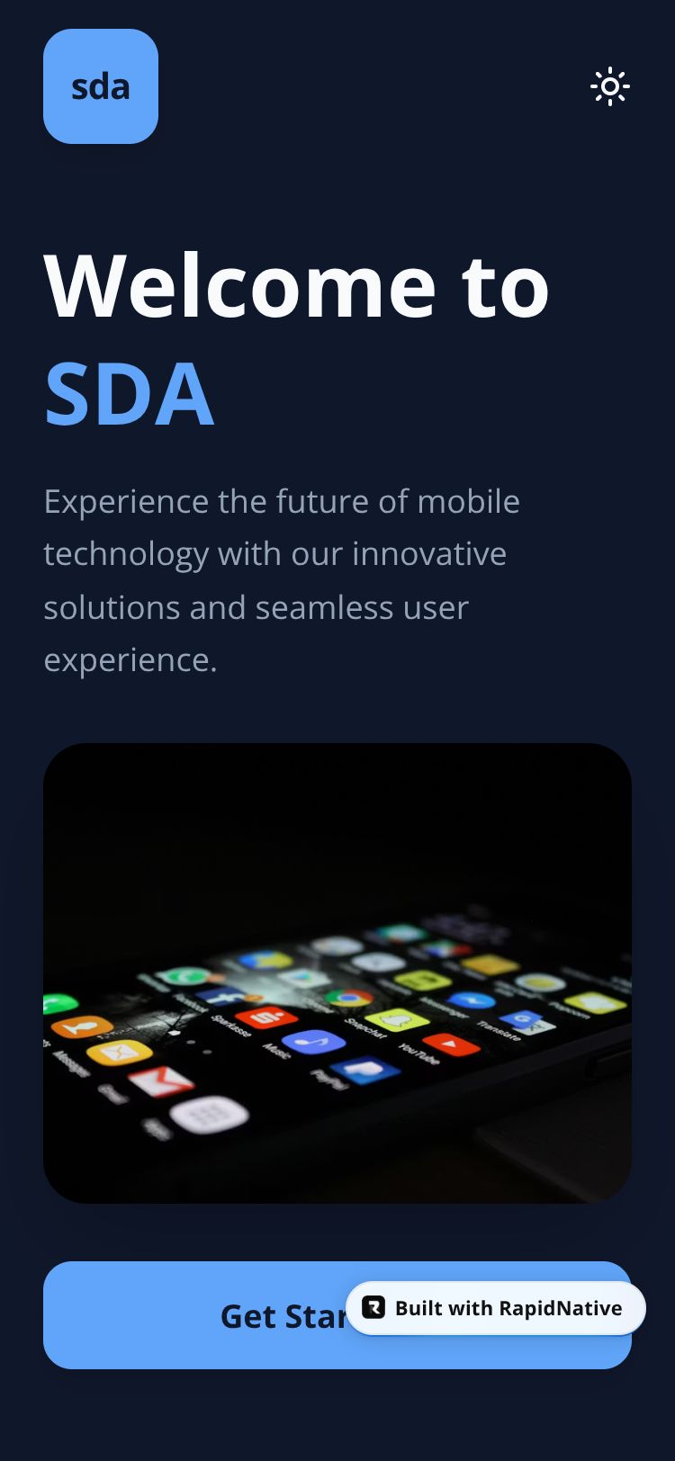 A clean, modern mobile app showcasing the SDA brand with minimalist design and intuitive navigation.