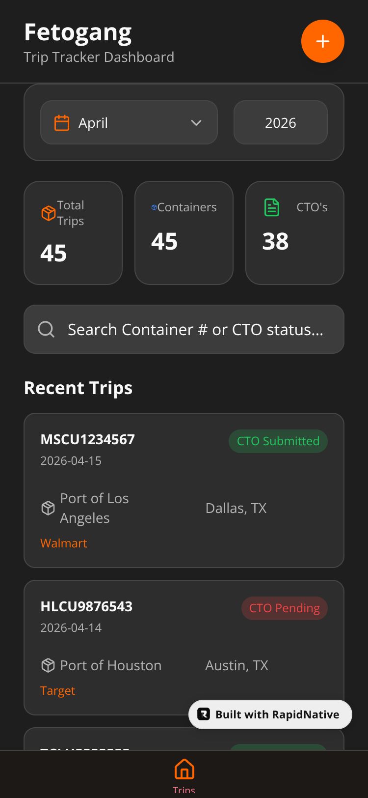A comprehensive trip management app for container transport with tracking and export capabilities.