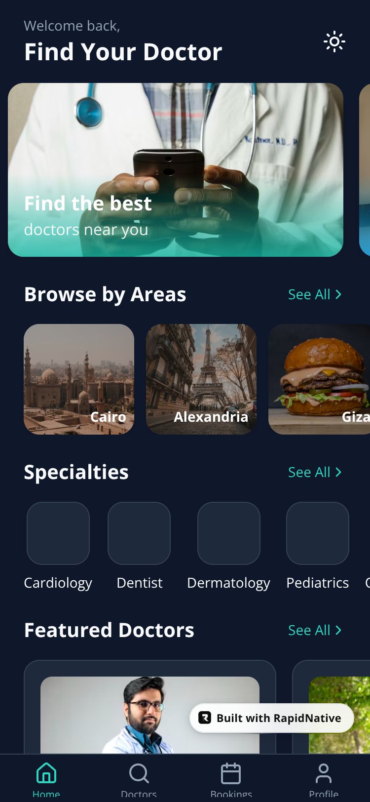A modern healthcare booking app for finding and booking doctor appointments with ease.
