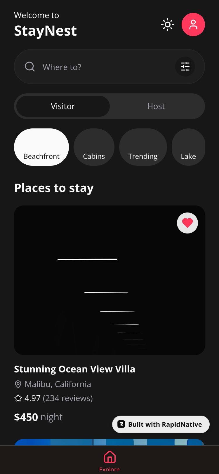 Browse this public project and clone it to start building your own React Native StayNest app.