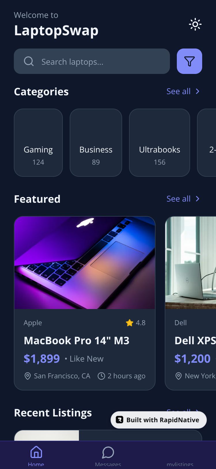 Browse this public project and clone it to start building your own React Native LaptopSwap app.