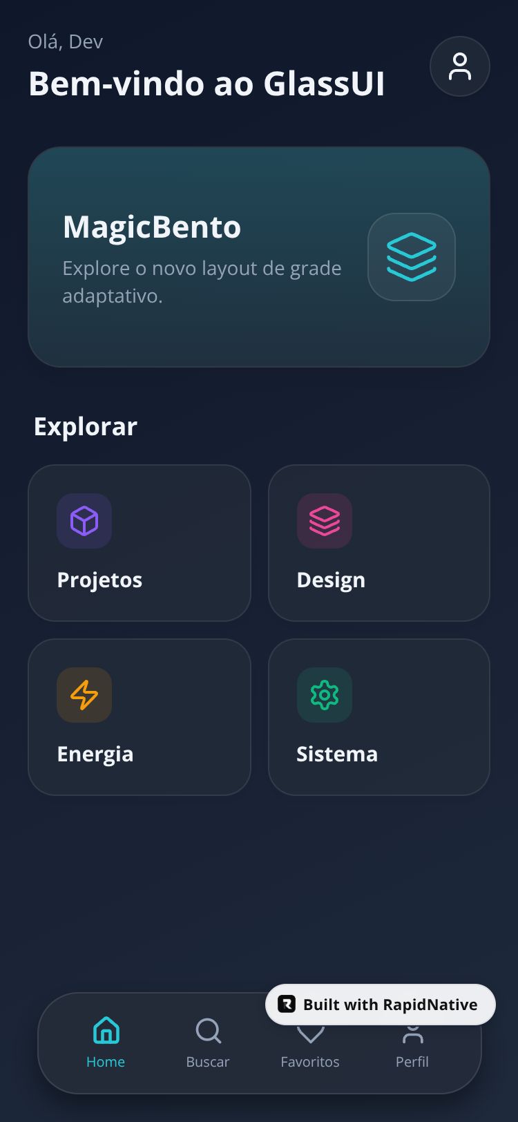 Browse this public project and clone it to start building your own React Native GlassUI Home app.