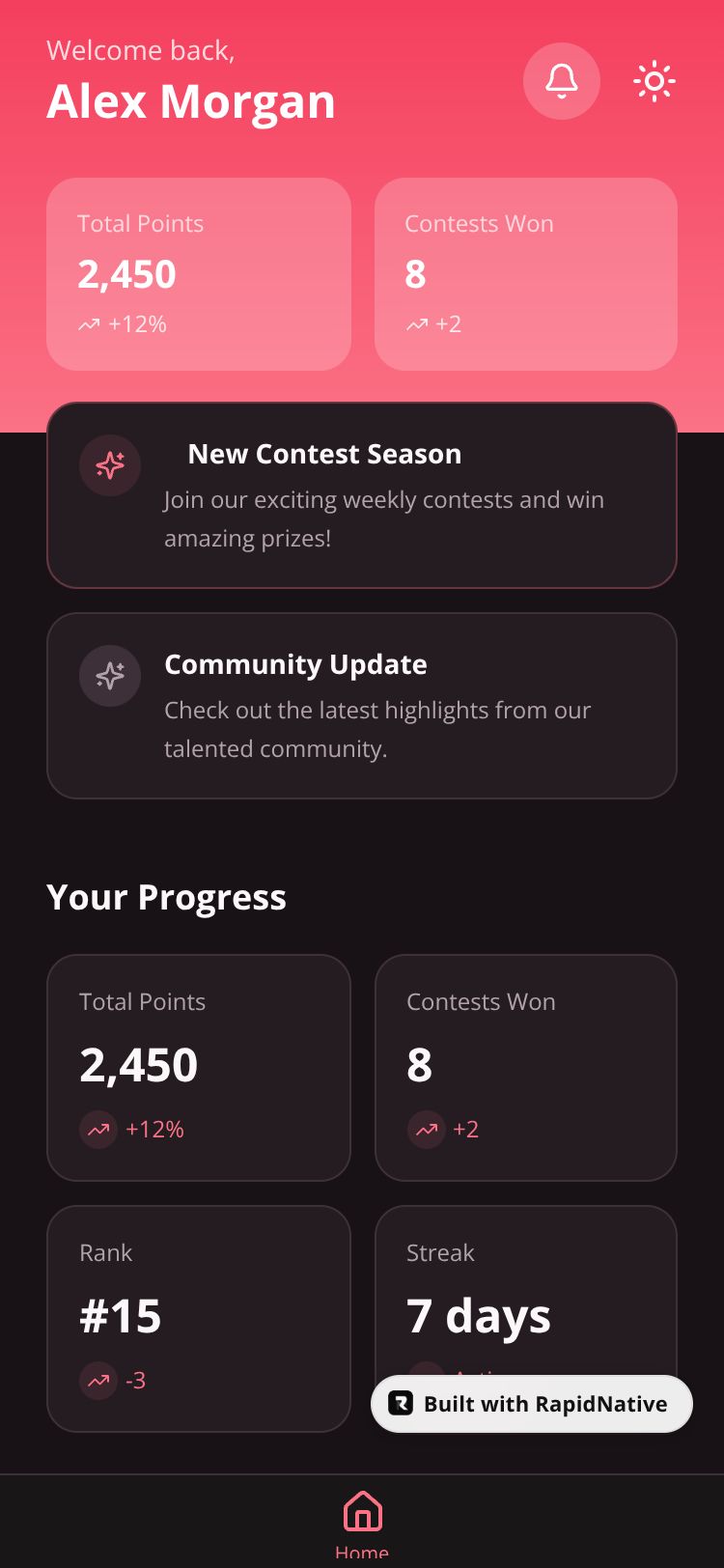 Browse this public project and clone it to start building your own React Native QuickFlow app.