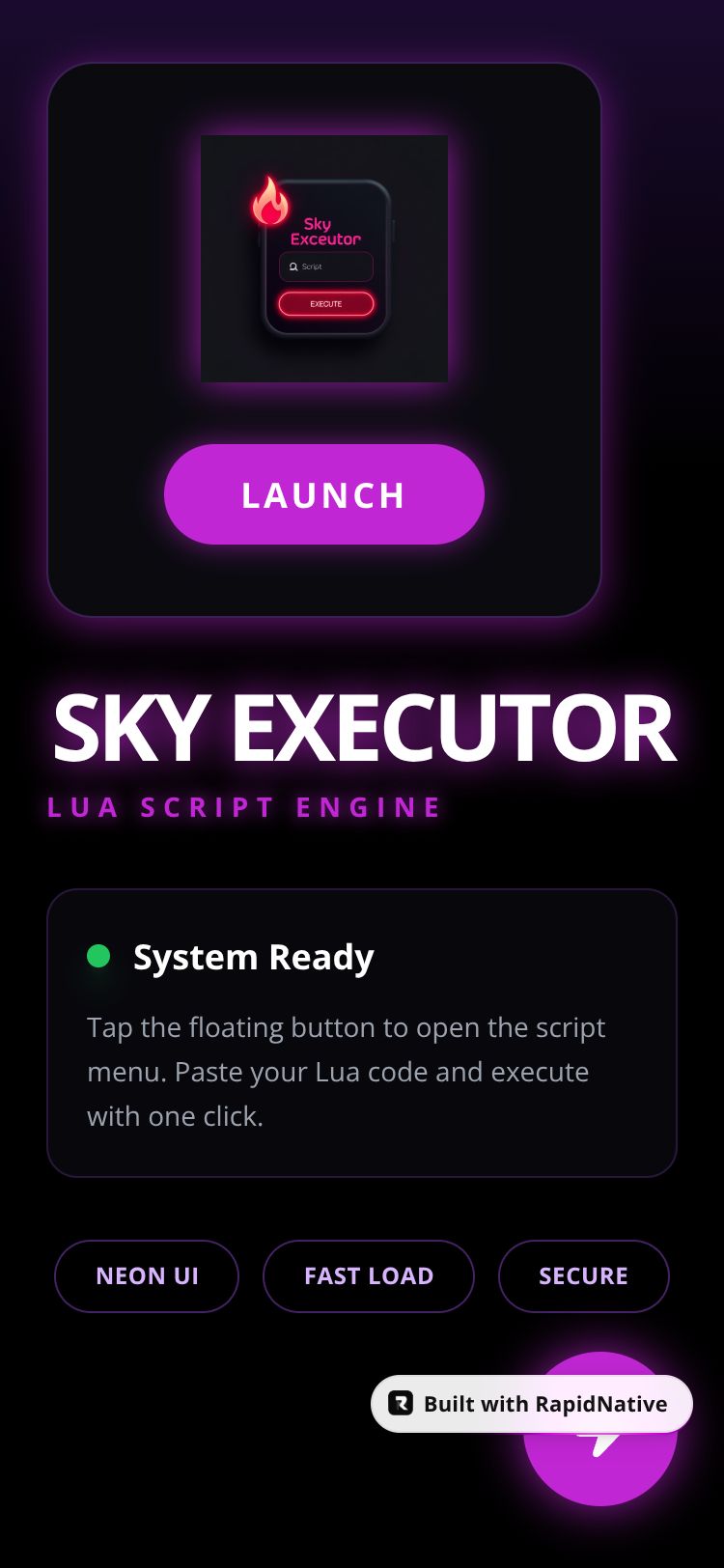 A cyberpunk-themed Lua script executor for Android with neon purple aesthetics. Features a sleek dark interface for loading and executing scripts with a floating action menu.