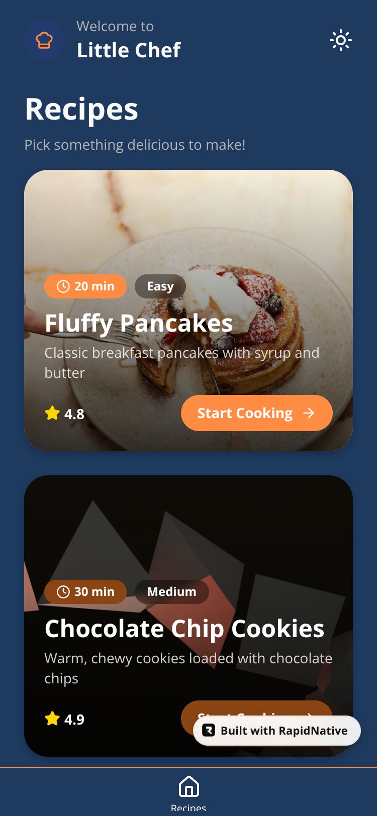 Browse this public project and clone it to start building your own React Native VisualCook Kids app.