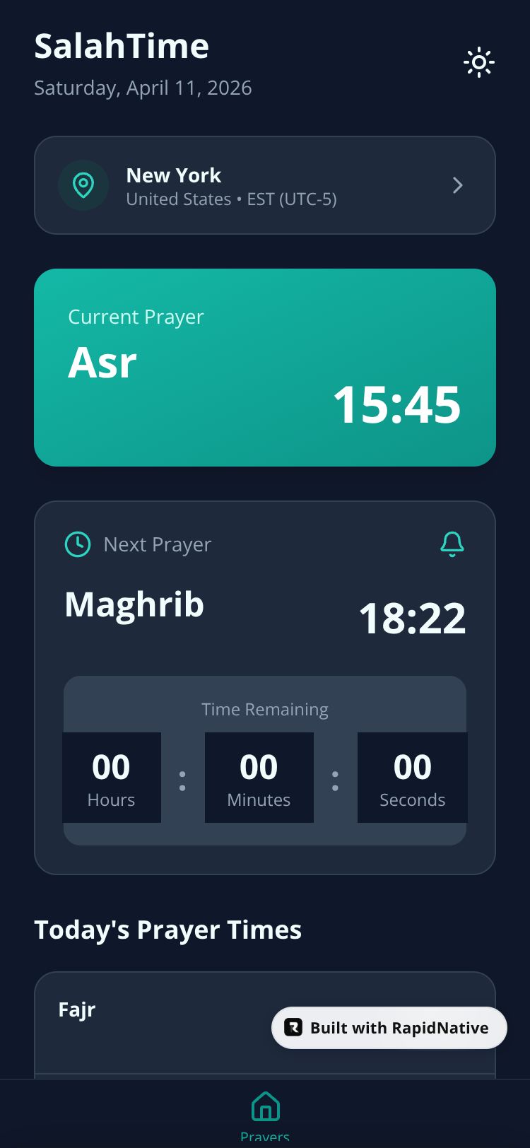 Browse this public project and clone it to start building your own React Native SalahTime app.