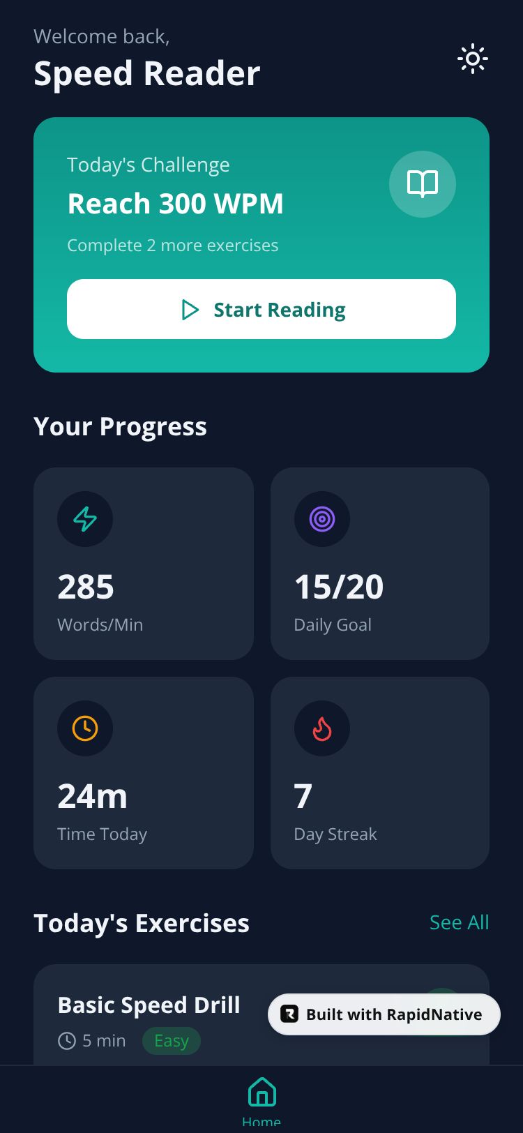React Native SpeedRead Pro App Preview