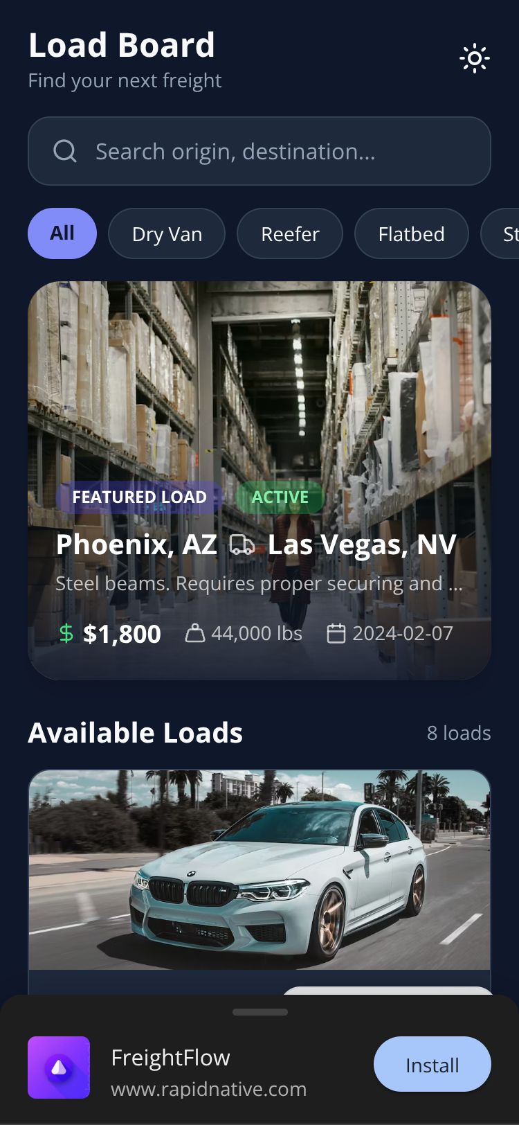 Browse this public project and clone it to start building your own React Native FreightFlow app.