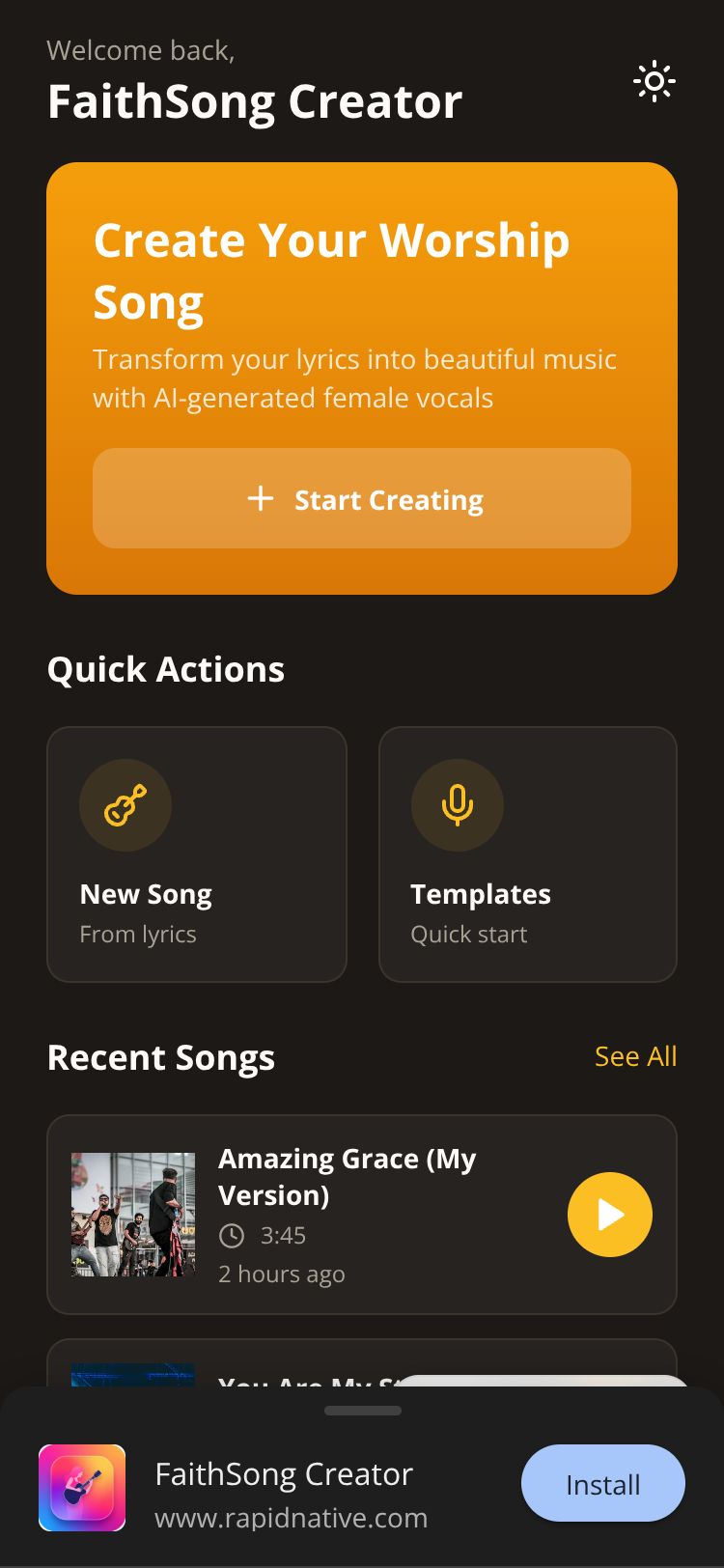 Browse this public project and clone it to start building your own React Native FaithSong Creator app.