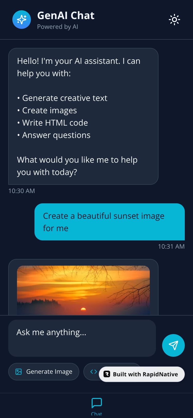 Browse this public project and clone it to start building your own React Native GenAI Chat Pro app.