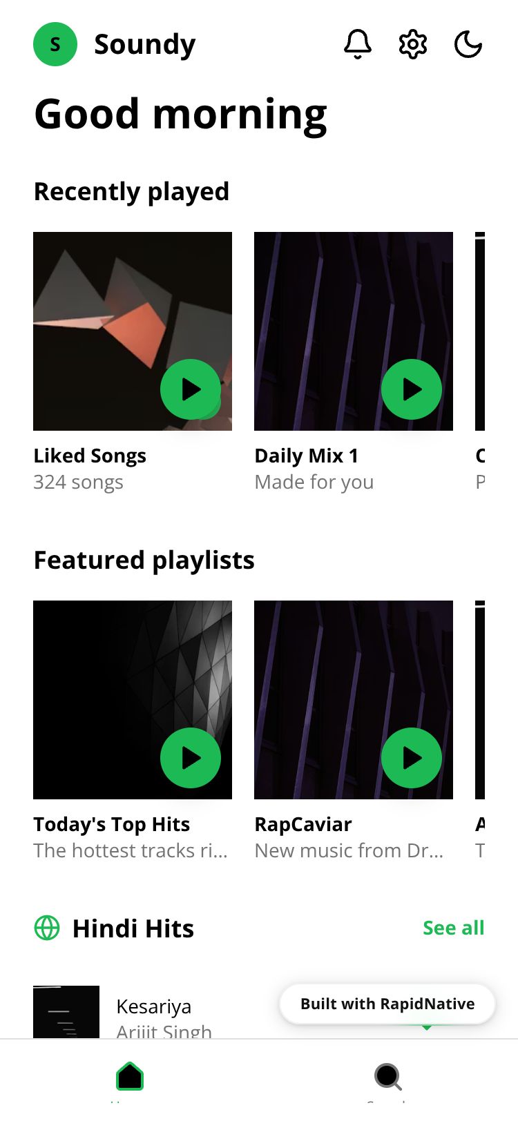 Browse this public project and clone it to start building your own React Native Soundy App app.