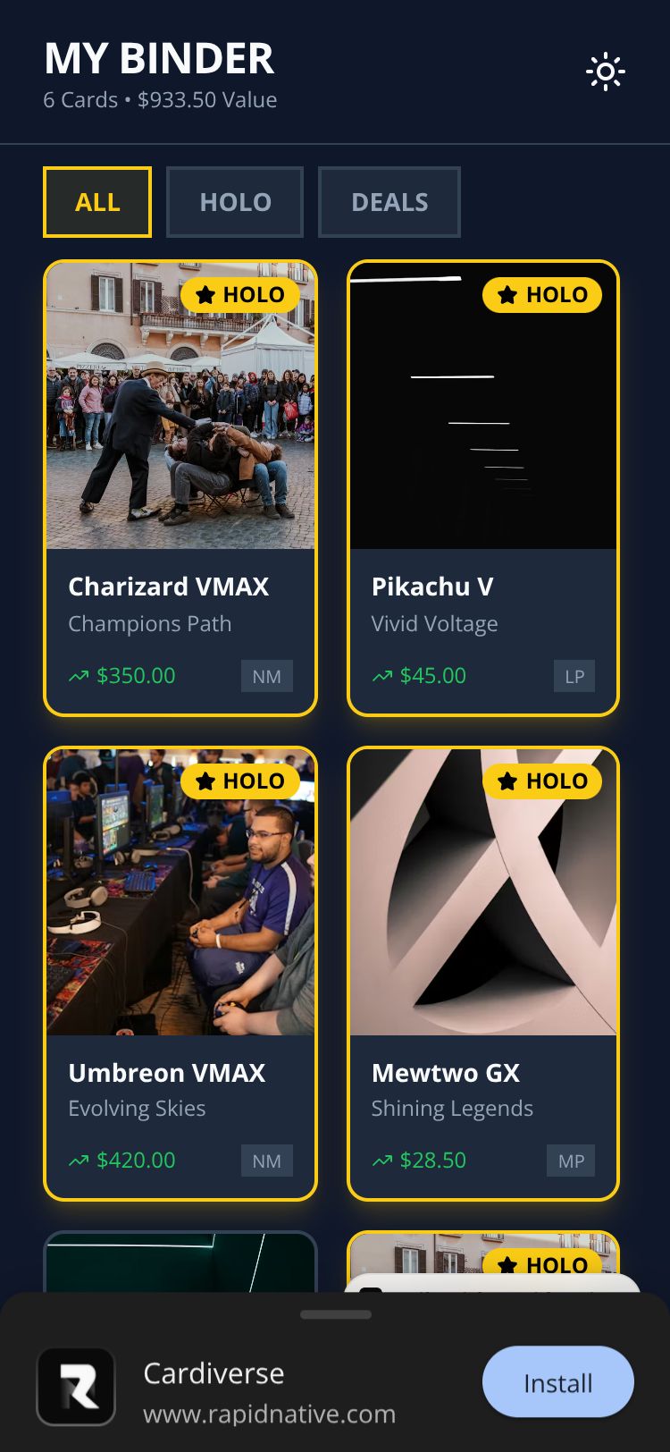 Browse this public project and clone it to start building your own React Native Cardiverse app.