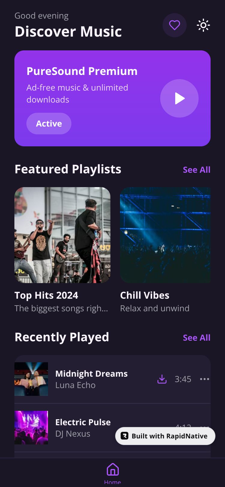 An ad-free music streaming app with offline downloads, curated playlists, and high-quality audio.