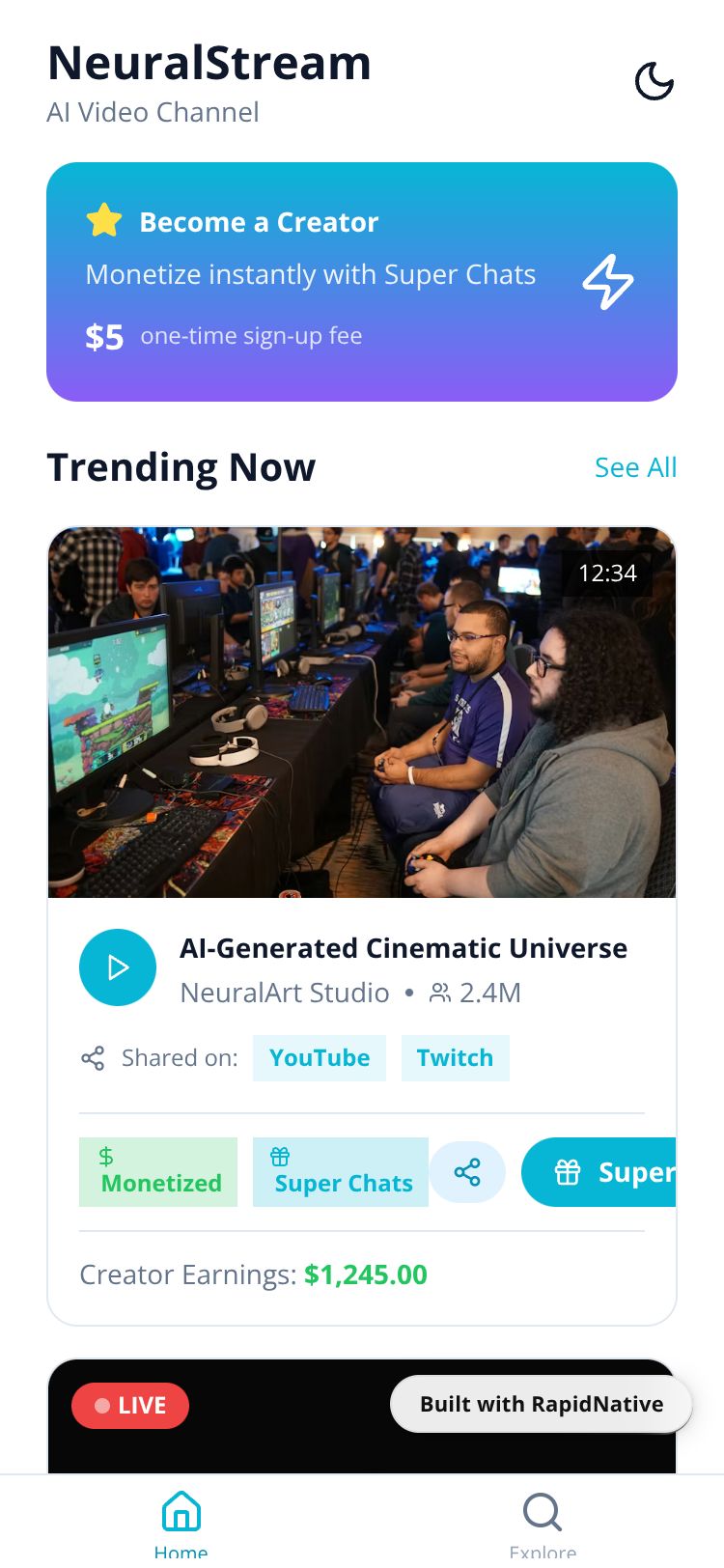 Browse this public project and clone it to start building your own React Native NeuralStream app.