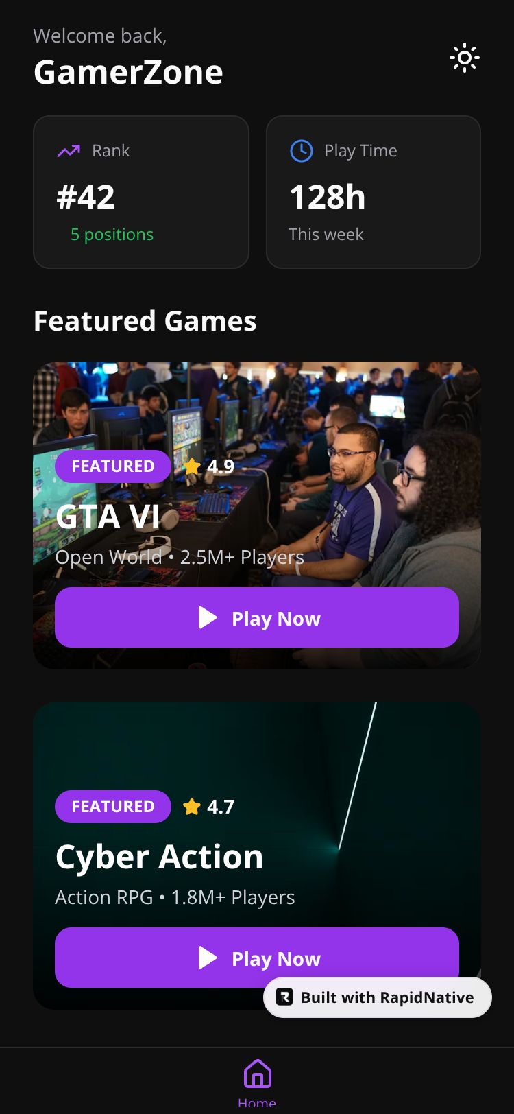 Browse this public project and clone it to start building your own React Native GamerZone Pro app.