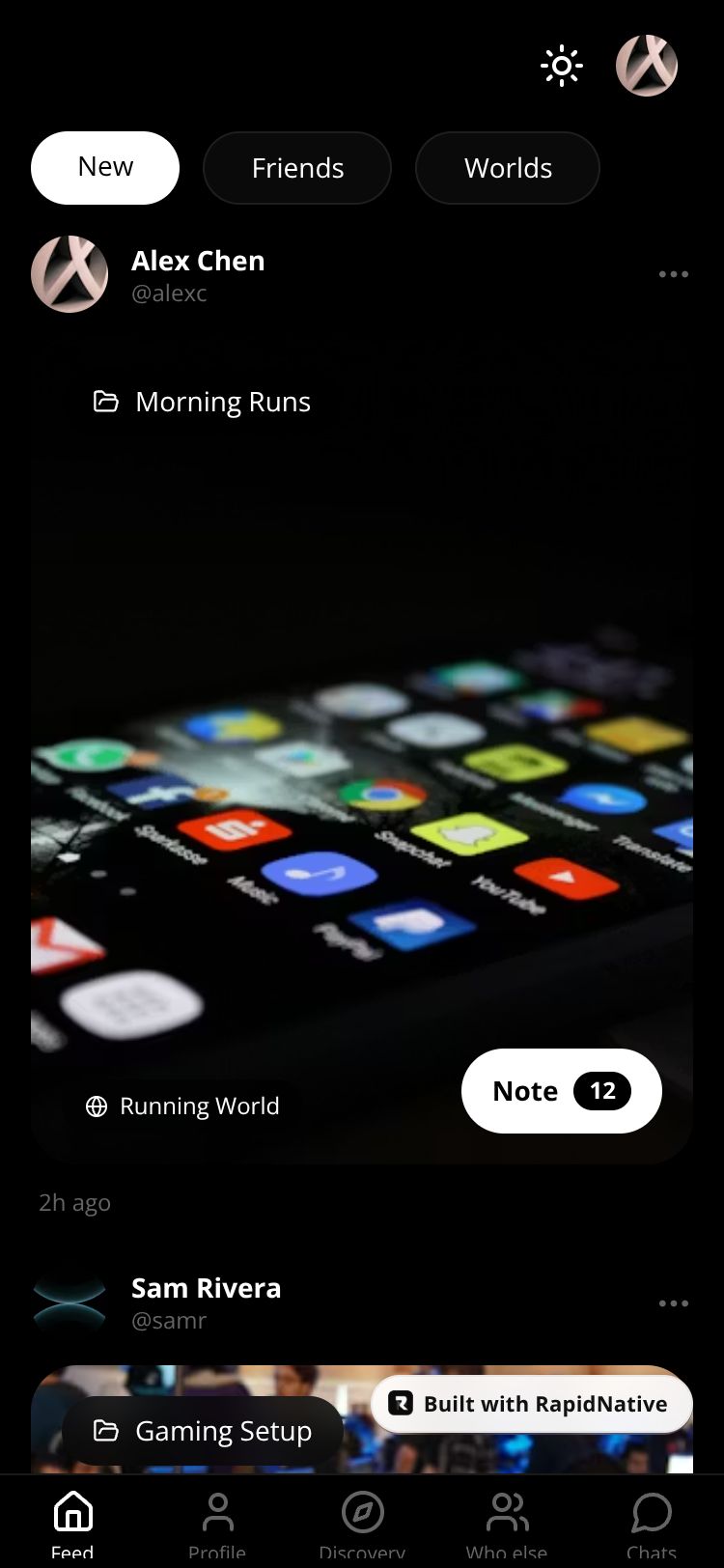 A first-person micro-blogging app focused on community. Share 15s moments in journeys within worlds, with chronological feeds and ephemeral 24h public chats.