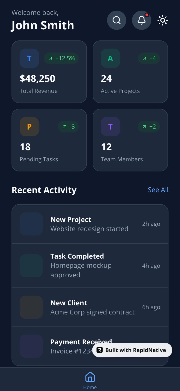 Browse this public project and clone it to start building your own React Native BizManager Pro app.