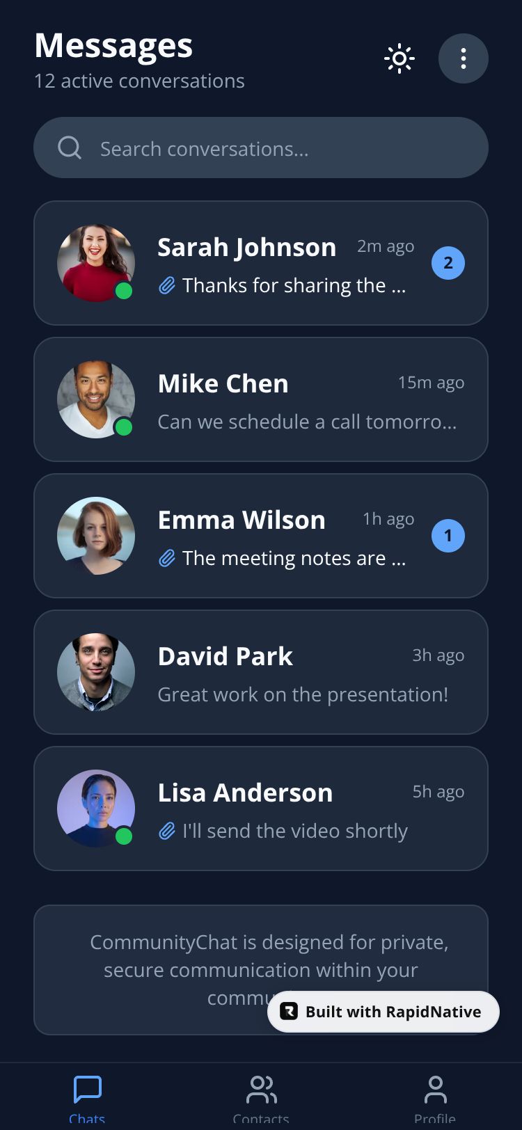 A secure private messenger app designed for small communities with 1-to-1 messaging, file sharing, and admin-controlled access.