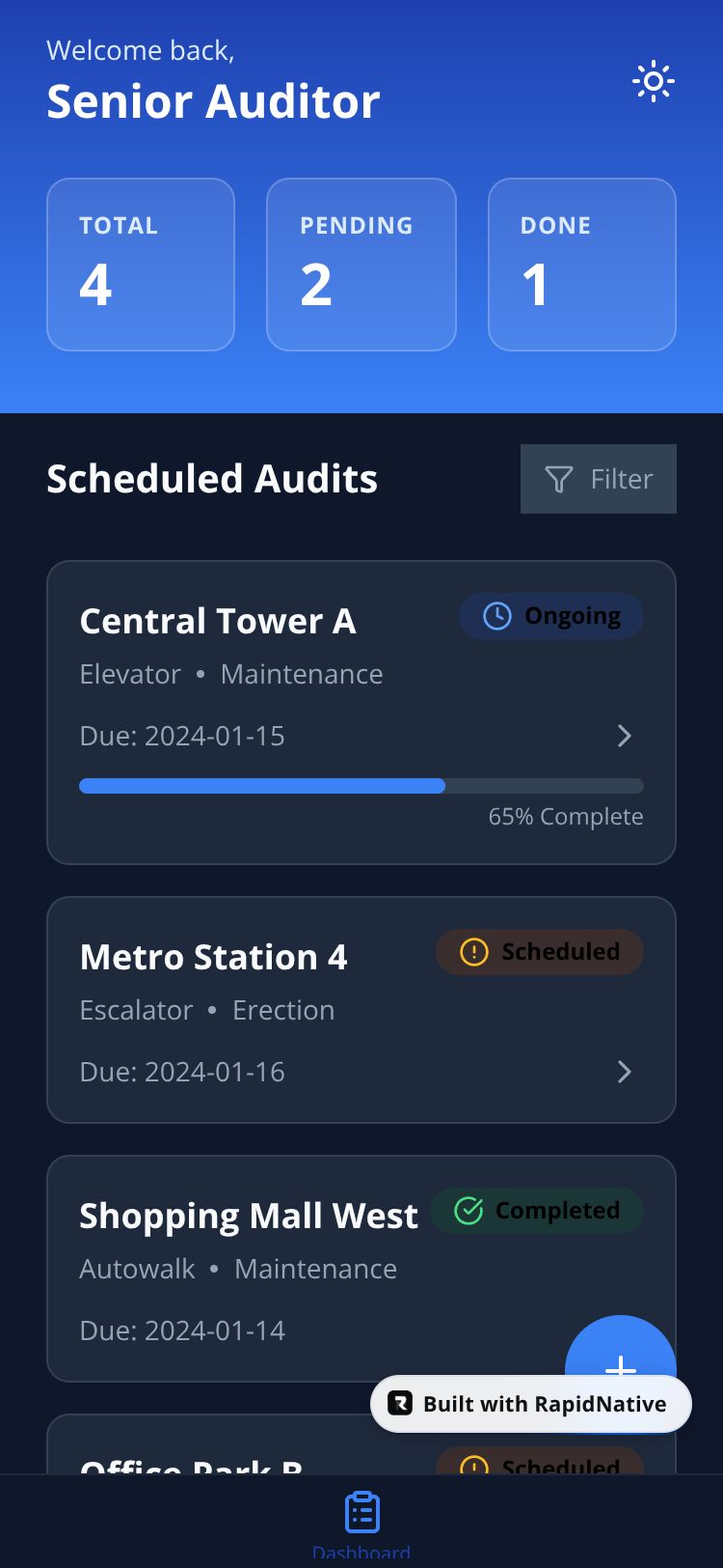 A high-performance mobile auditing application for managing elevator, escalator, and autowalk inspections with offline-first capabilities.