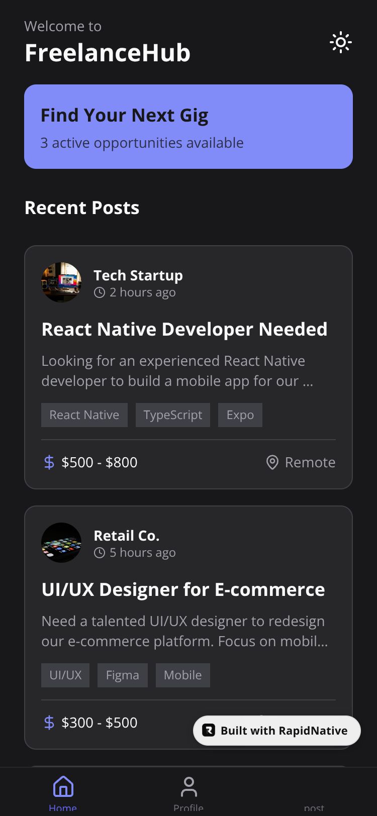 React Native FreelanceHub App Preview
