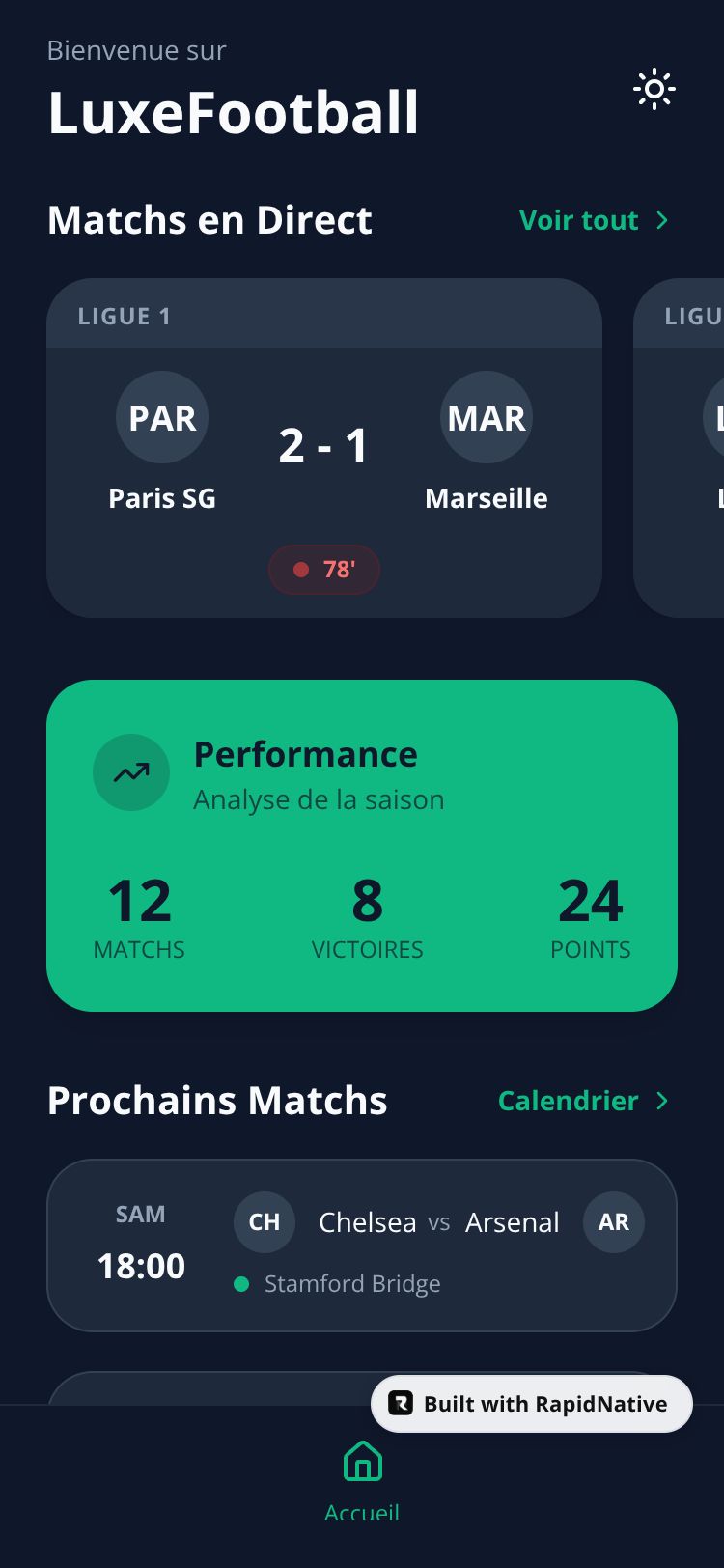 Browse this public project and clone it to start building your own React Native LuxeFootball app.