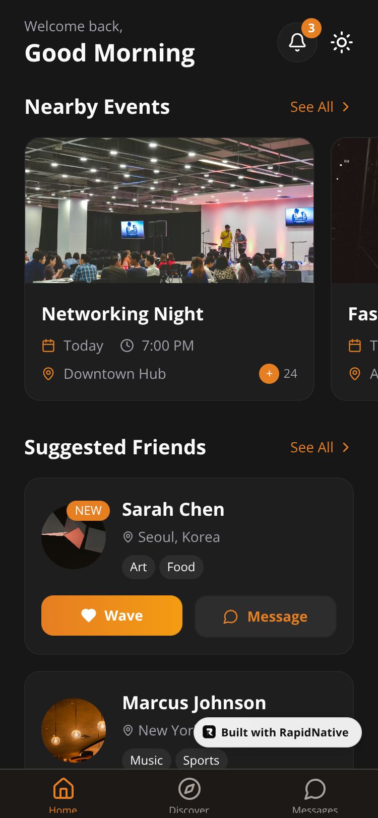 A newcomer community integration app helping people connect, discover local events, and find friends in their new city.