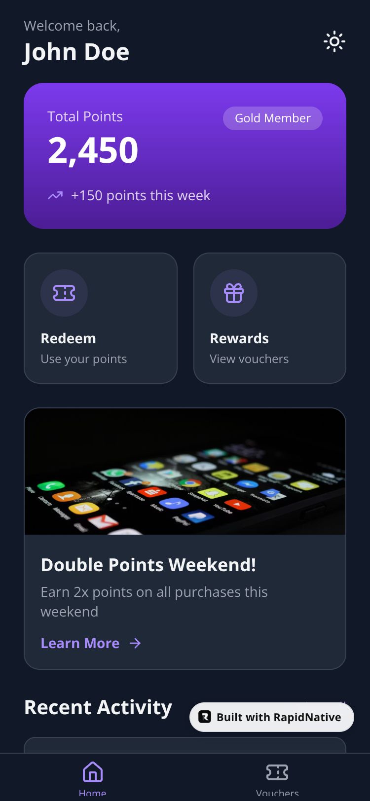 A complete loyalty and rewards platform allowing users to earn points, redeem vouchers, and track transactions seamlessly.