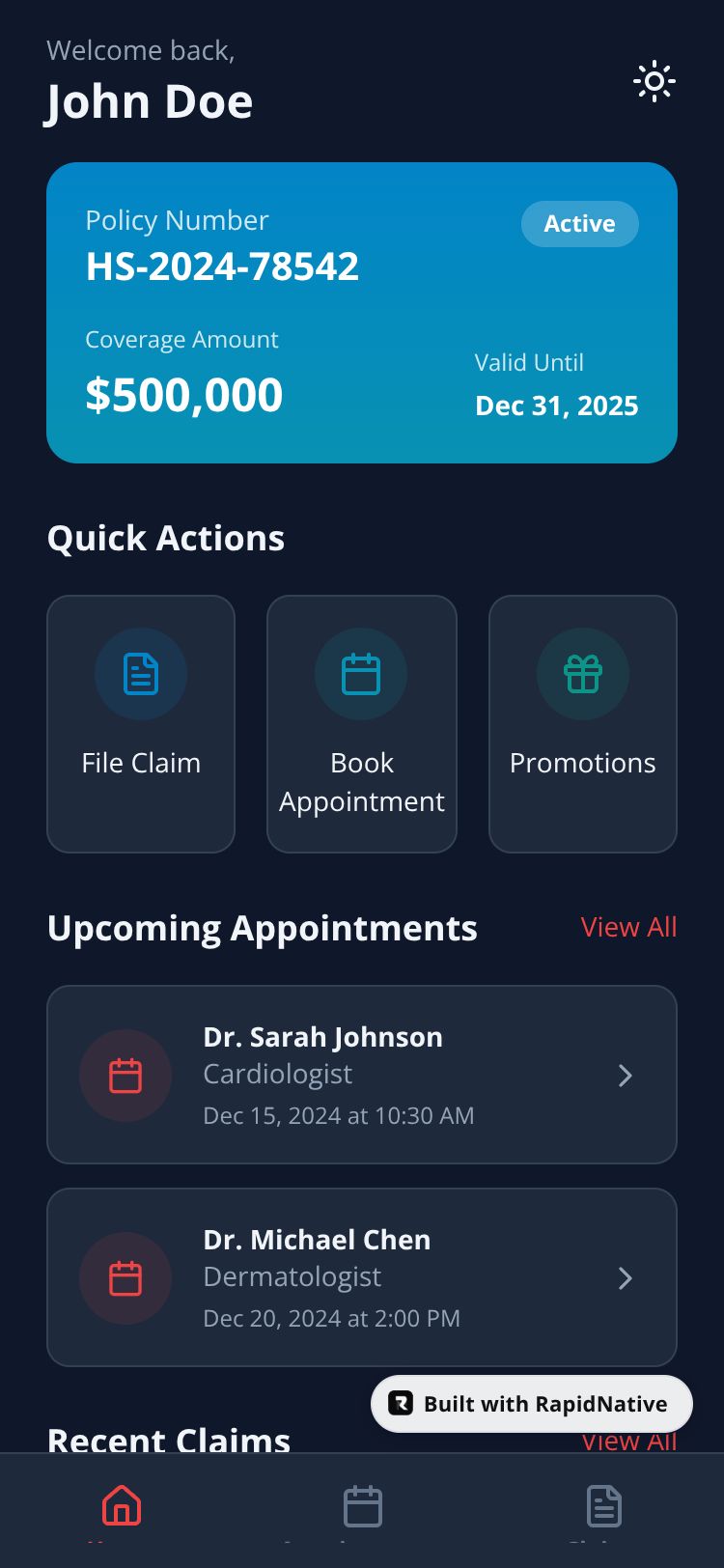 Your comprehensive health insurance companion for managing claims, appointments, and exclusive promotions all in one place.